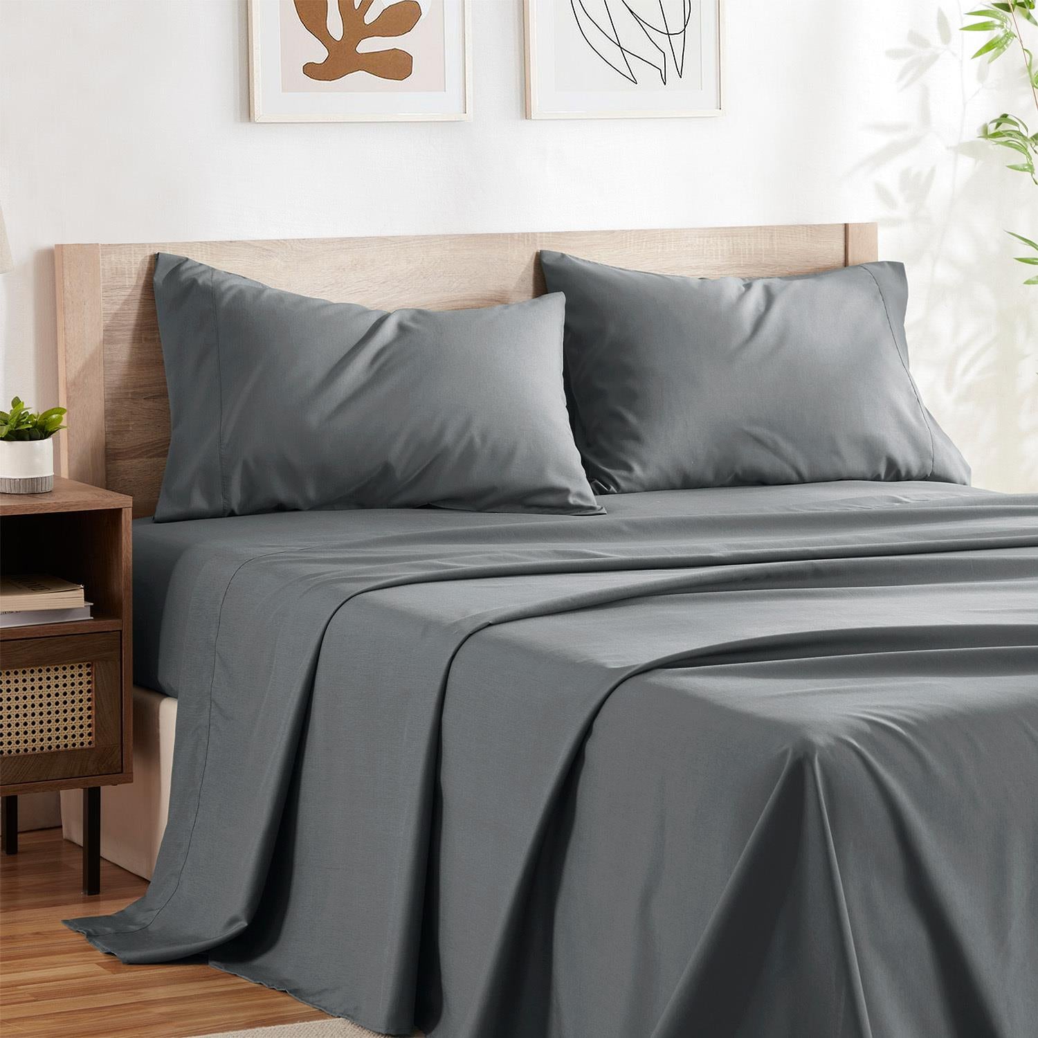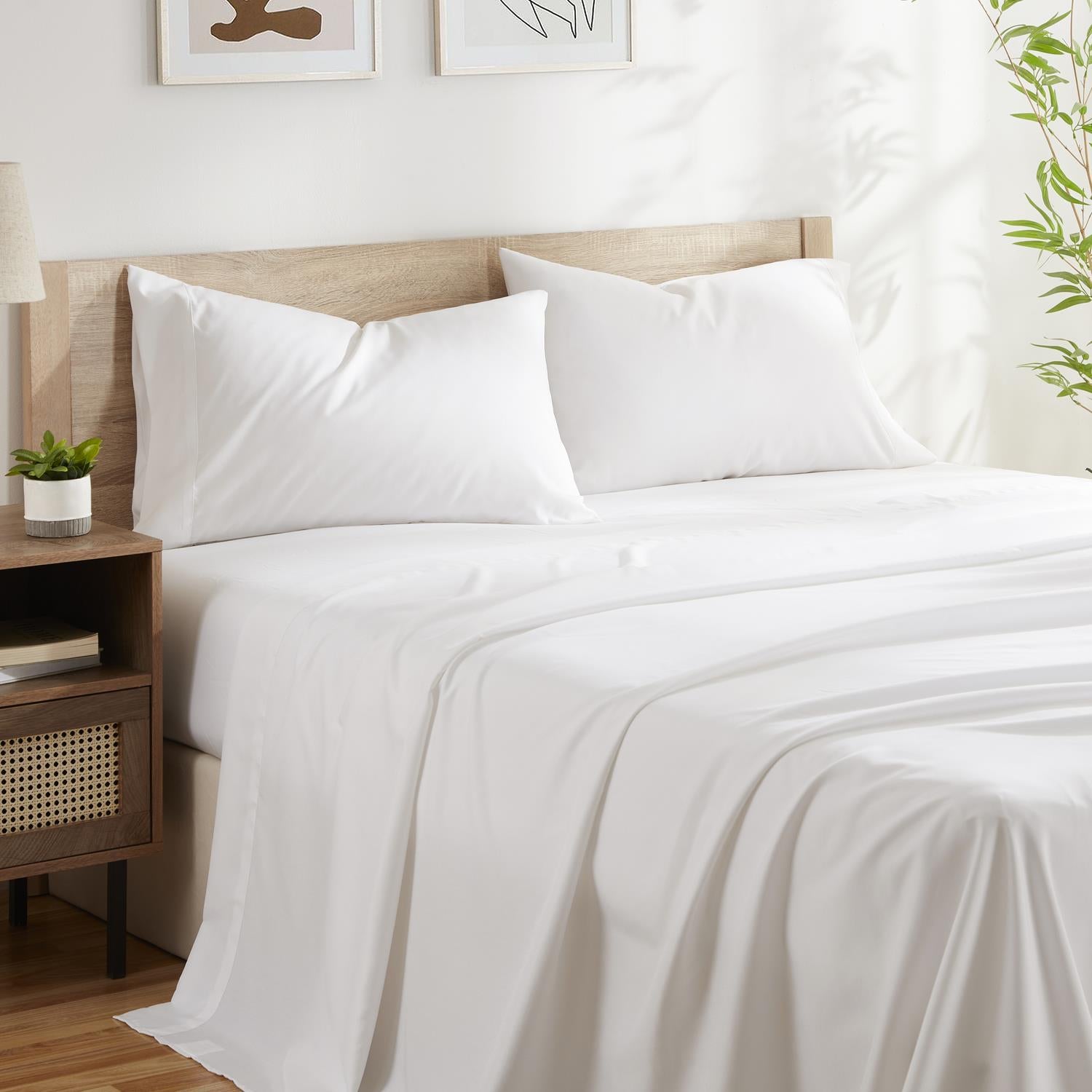 Experience the perfect balance of comfort and practicality with this four-piece bamboo sheet ensemble. Engineered from a premium bamboo blend, these sheets deliver exceptional softness while maintaining their appearance through repeated washing. The collection includes two pillowcases, one fitted sheet accommodating mattresses up to 16 inches deep, and one flat sheet. Natural bamboo fibers provide inherent breathability and thermoregulation, adapting to your body's temperature throughout the night. Minimal maintenance requirements mean you'll spend less time on laundry and more time enjoying superior sleep quality.