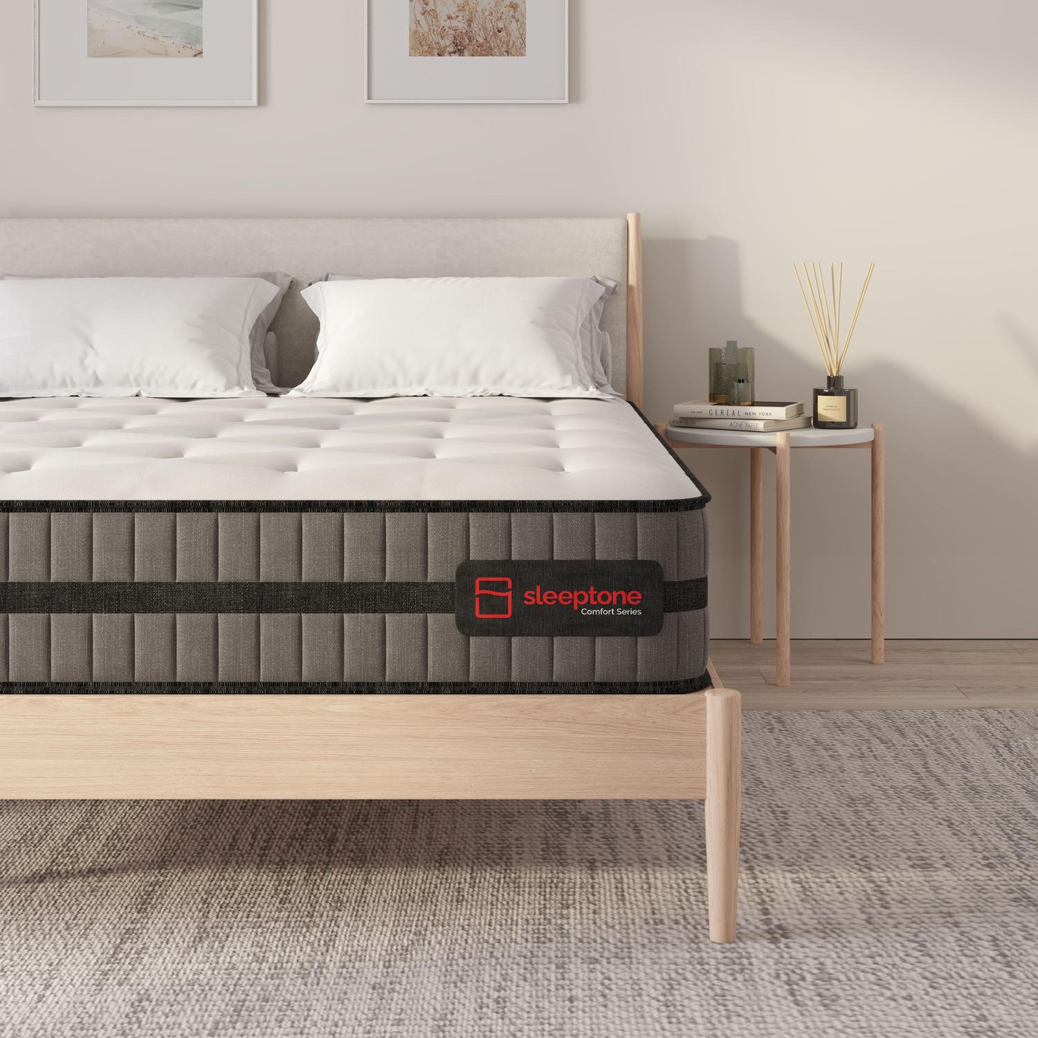 Introducing a new line of Hybrid mattresses crafted with innovative layers that offer superior breathability, pressure relief, and temperature regulation. This mattress caters to every sleep style. Whether you're a side sleeper seeking extra cushioning or a back sleeper looking for firm support, the Sleeptone® Comfort Series adapts to your body for a rejuvenating sleep experience.