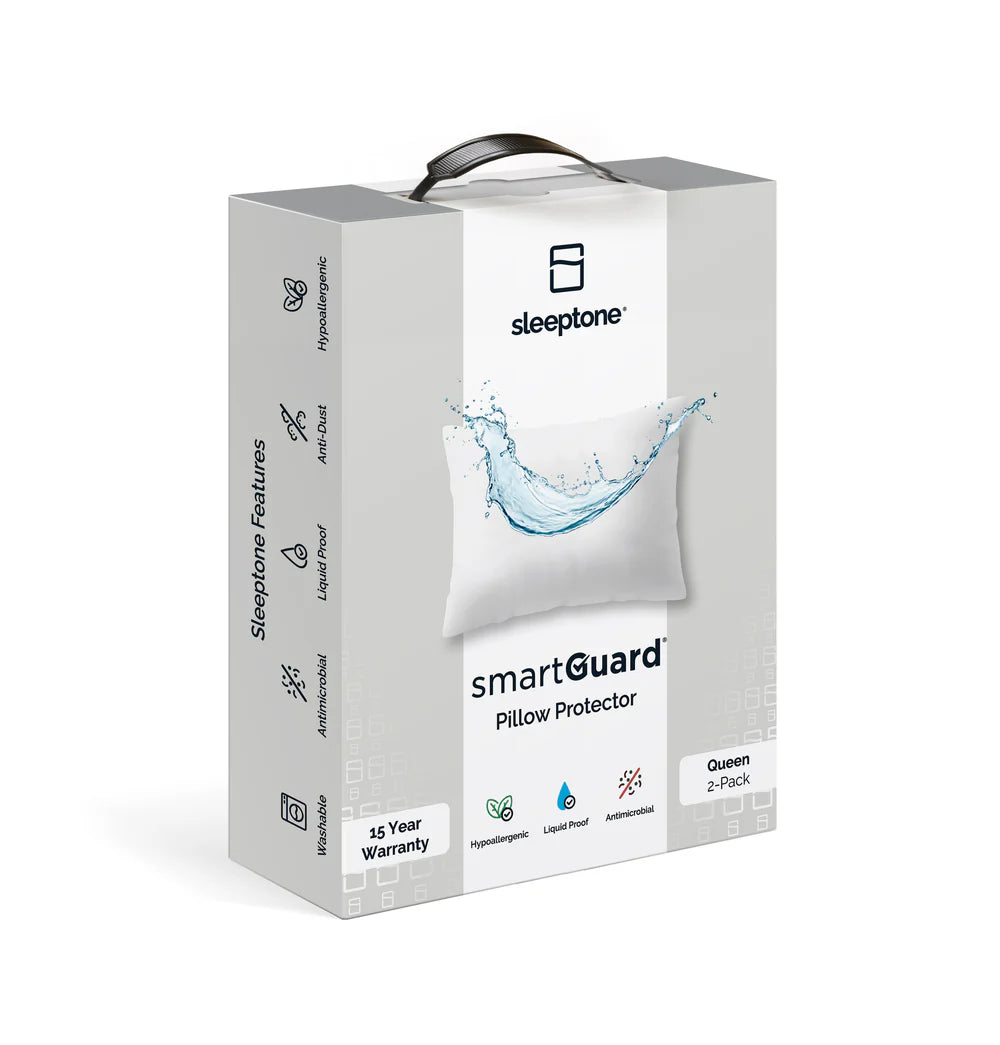 This 2-piece set of SmartGuard® Pillow Protectors offers superior protection with ultra-thin premium interlocking microfiber material that is softer and more effective than terry cotton top protectors. The hypoallergenic, Saniwoven® antimicrobial technology eliminates bacteria and odors, while our DRYSEAL® barrier guards against fluids and accidental spills. Enjoy the benefits of a FULL ENCASEMENT pillow protection that guards against liquids, allergens, bacteria, and dust mites. Our premium interlocking microfiber material is smooth, quiet, breathable, and hypoallergenic.